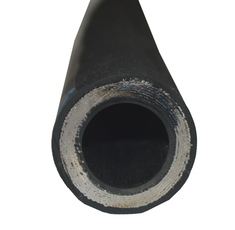 This hose shall consist of an inner tube of oil resistant synthetic rubber, multiple layers of spiral plies of heavy steel wire wrapped in alternating directions, and an oil and weather resistant synthetic rubber cover.